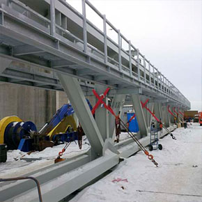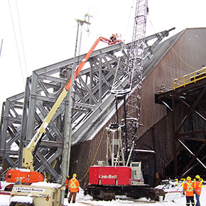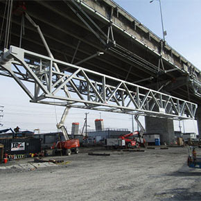 Nous examinons visuellement l’état structural et, au besoin, les charges de l’appareil. Nous procédons à des essais par magnétoscopie dans les zones susceptibles de fissurations et procédons à des essais de ressuage et d’ultrasons sur les bielles « pins» des joints articulés.
